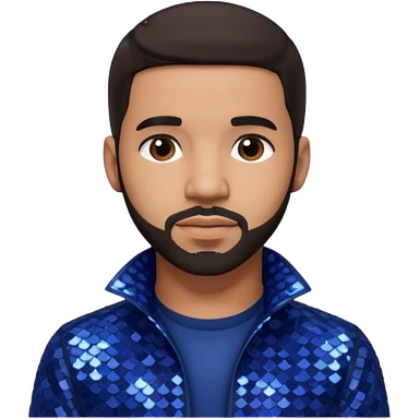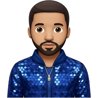 Drake with dark brown hair, indigo sequin outfit emoji