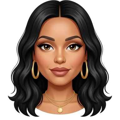 Cardi B with long jet black hair, beige outfit emoji