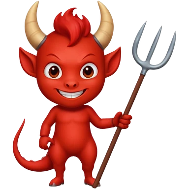 a Red devil, Small red imp holding pitchfork, tail curled emoji