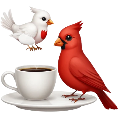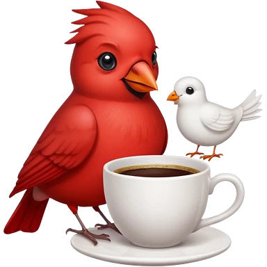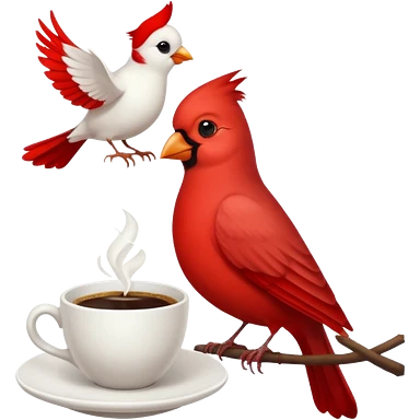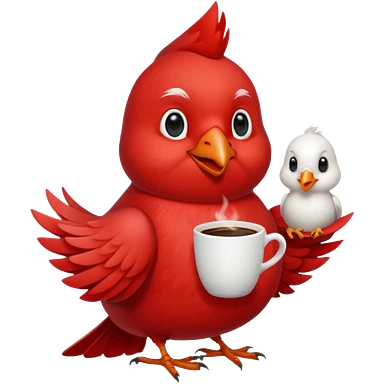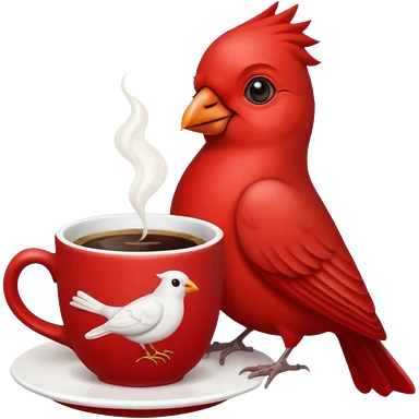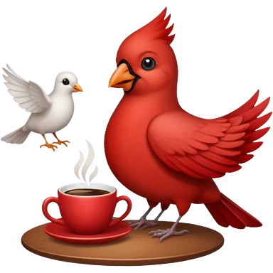 Happy cardinal bird with a dove and a cup of coffee emoji