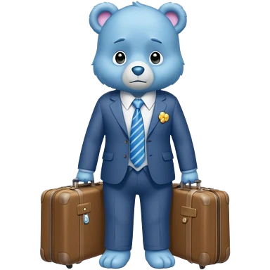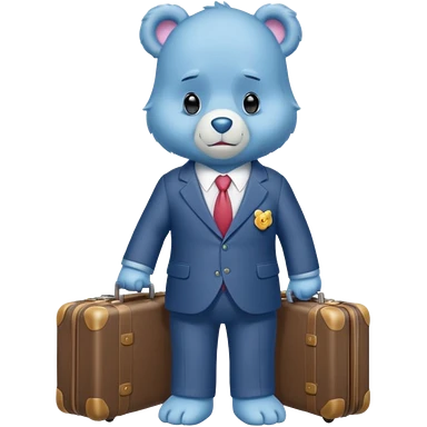 Care bear with a suit and a suitcase sad in the metro emoji