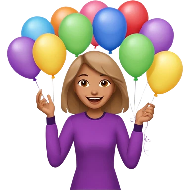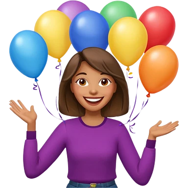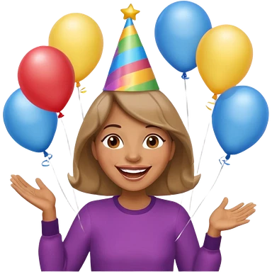caricatura gorgi gales hembra celebrando feliz con globos y emocion emoji
