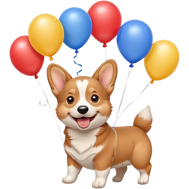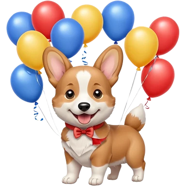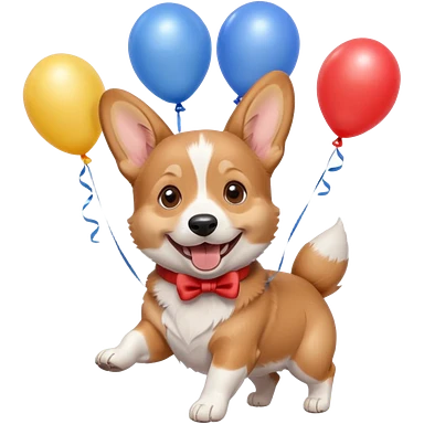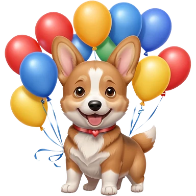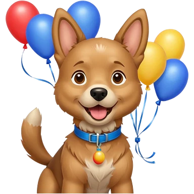 caricatura gorgi gales perrita celebrando feliz con globos y emocion con collar celeste emoji | AI Emoji Generator