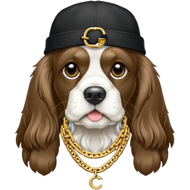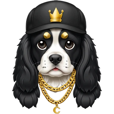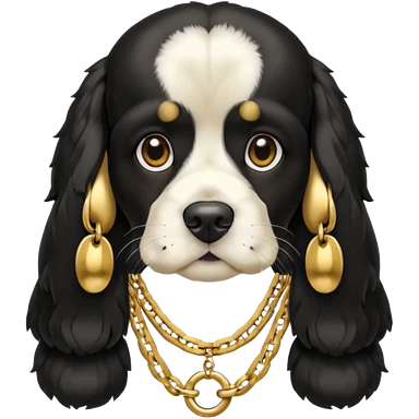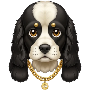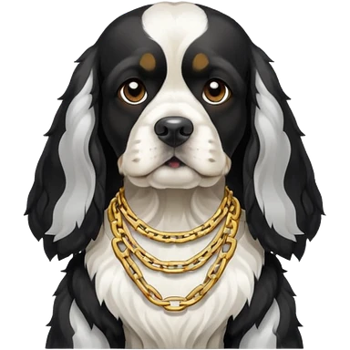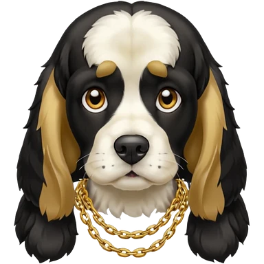 Собака породы черно-белый русский кокер спаниель с реперской цепью emoji