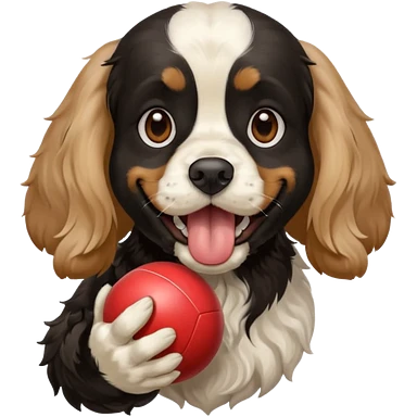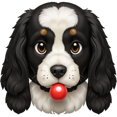 Собака породы черно-белый русский кокер спаниель с покеболом в зубах emoji