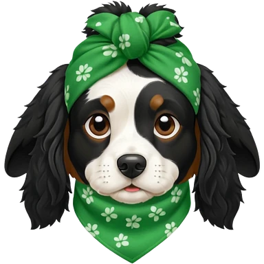 Собака породы черно-белый русский кокер спаниель в зеленой бандане emoji