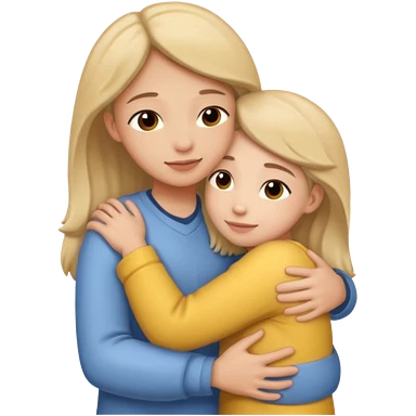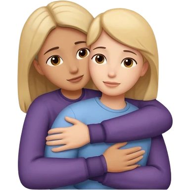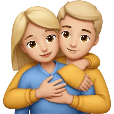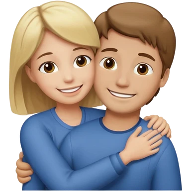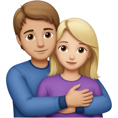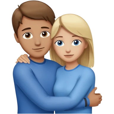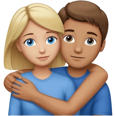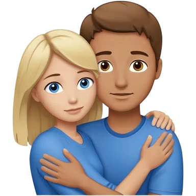 Caring hug brown hair man with blue eyes blonde hair woman with brown eyes emoji