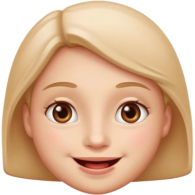Su cabello es largo, rosa brillante en la raíz y verde en las puntas, con un estilo suave y voluminoso. Tiene ojos grandes y verdes, y un rostro delicado que refleja su ternura y simpatía emoji