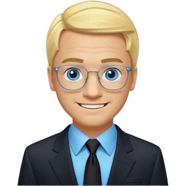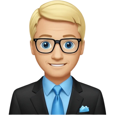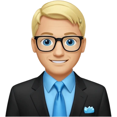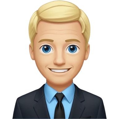 David Carlton from Ali G Indahouse with blue eyes, blonde hair, icy blue dress shirt with black tie, black suit jacket emoji