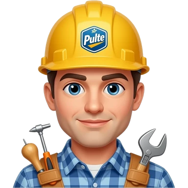 carpenter with tools and Pulte on his hard hat emoji