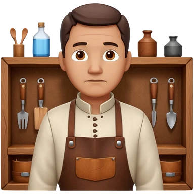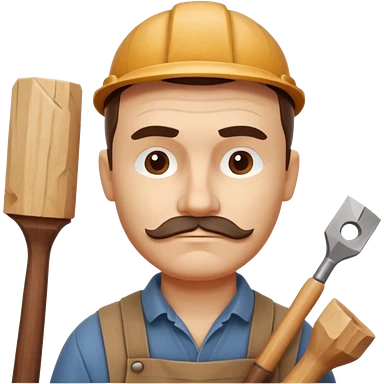 carpenter portrait, head and shoulders only, wearing work apron, wooden tools visible, focused friendly expression, workshop vibe, 3D cartoon, mobile game icon style, clean background, no text, no watermark