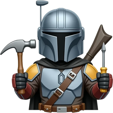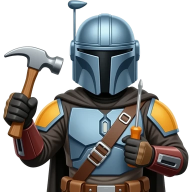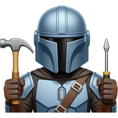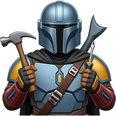 the mandalorian holding a hammer and screwdriver emoji