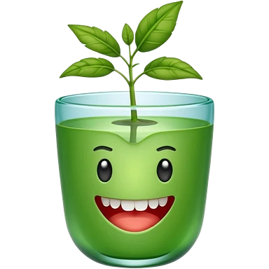 Vaso de vidro com uma planta carnívora de boca aberta emoji