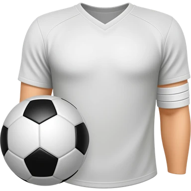 Emoji-style head and upper body of a soccer player with light skin, dark blue hair with green tips, short beard, blue left eye and green right eye, wearing a white jersey with black and red details and a red captain armband. White background. emoji
