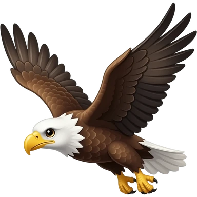 Stylized vector eagle flying sideways, wings spread up. Matte black with neon-green angular feather patterns, fierce face, extended talons. Bold flat sticker style with a thick clean white outline. emoji