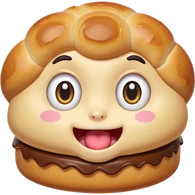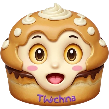 Funny cartoon mini chochklet pastry, slightly messy and squished, big round eyes, wide open mouth, playful surprised expression, text above: "ПАСТИЧКА", chibi style, Twitch emoji style, transparent background, colorful emoji