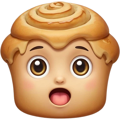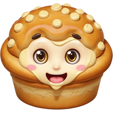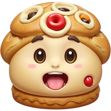 Funny cartoon mini pastry, slightly messy and squished, big round eyes, wide open mouth, playful surprised expression, text above: "ПАСТИЧКА", chibi style, Twitch emoji style, transparent background, colorful emoji