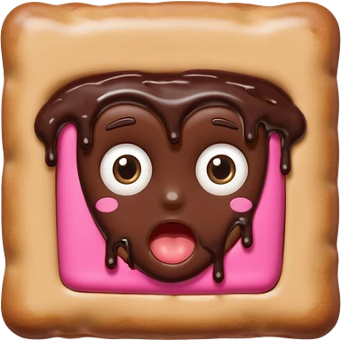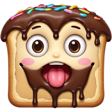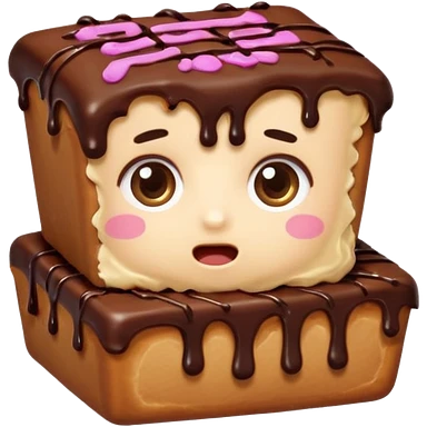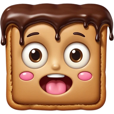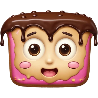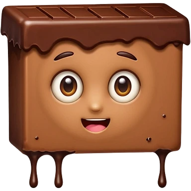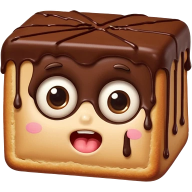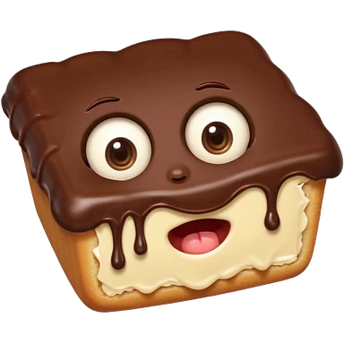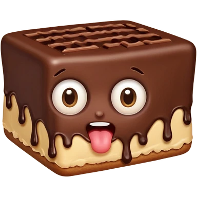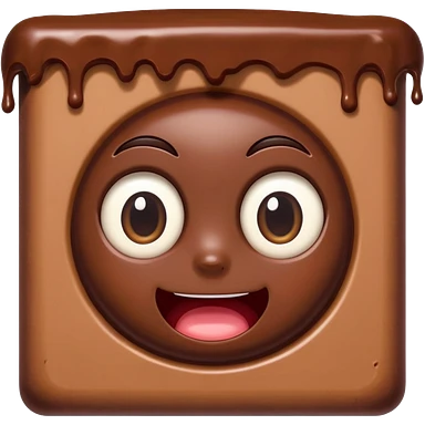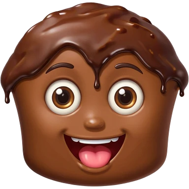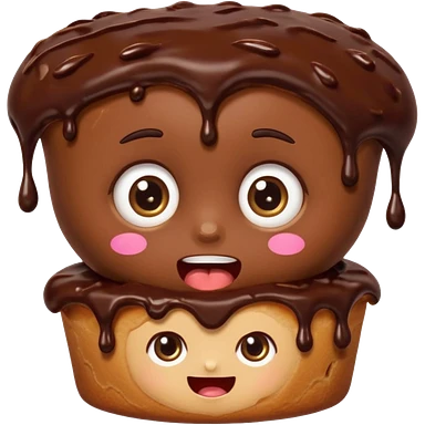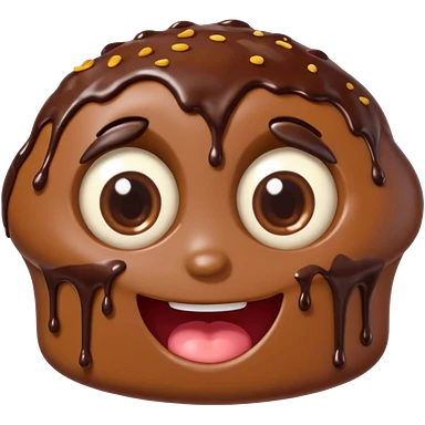 Funny cartoon chocolate mini pastry, crazy wide eyes, messy chocolate dripping, smiling distorted face, chibi style, Twitch emoji style, transparent background, colorful emoji