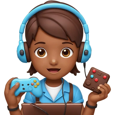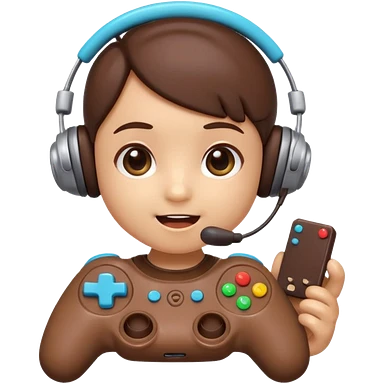 Cartoon chocolate mini pastry wearing tiny headset, holding tiny controller, focused excited eyes, chibi style, Twitch emoji style, transparent background, colorful emoji