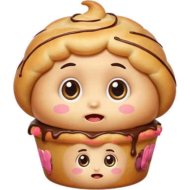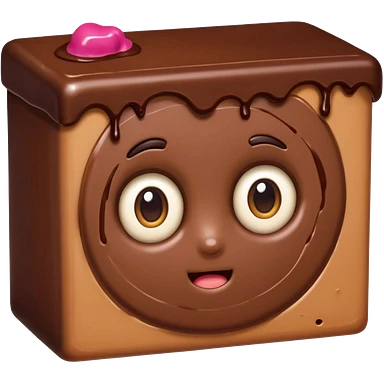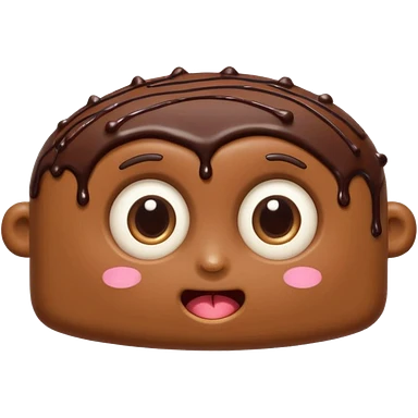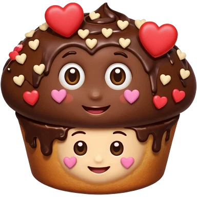 Cartoon chocolate mini pastry with heart eyes, tiny hearts floating, smiling face, chibi style, Twitch emoji style, transparent background, colorful emoji | AI Emoji Generator