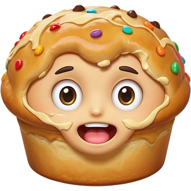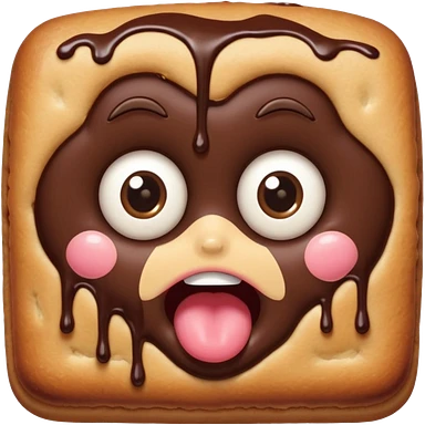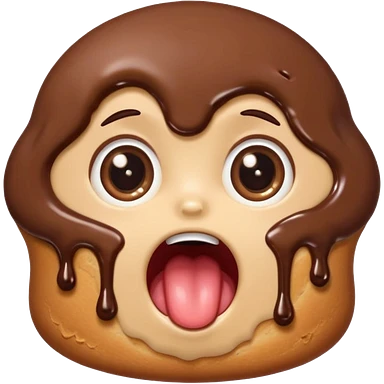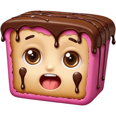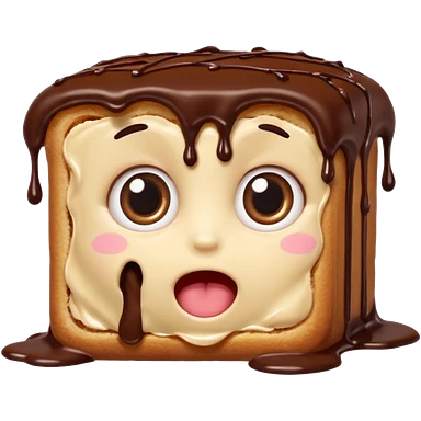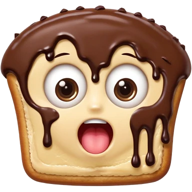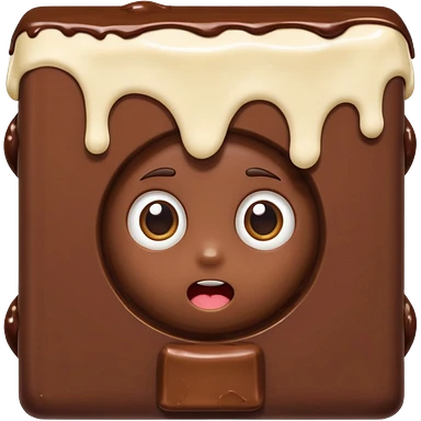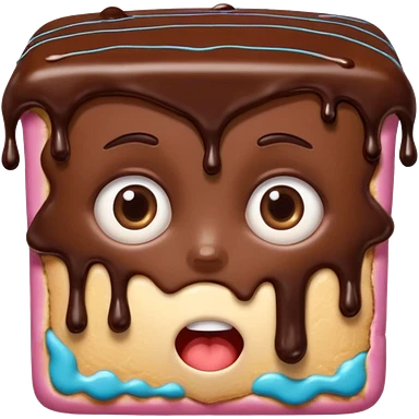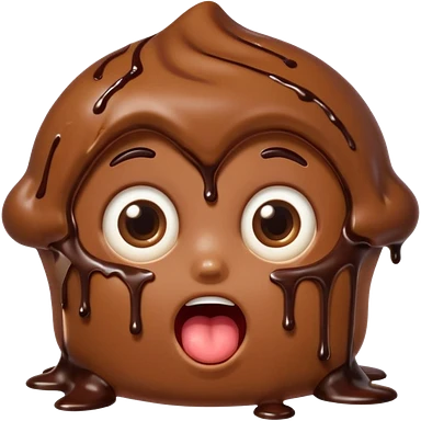 Funny cartoon chocolate mini pastry, wide shocked eyes, messy chocolate dripping, open mouth, chibi style, Twitch emoji style, transparent background, colorful emoji