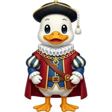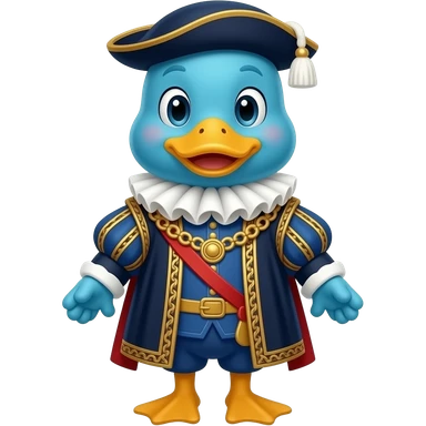 Blue cartoon duck wearing an english noble's outfit with blue duck fur emoji