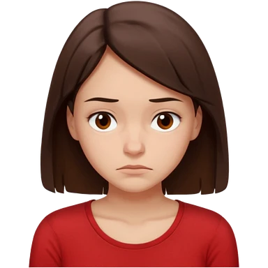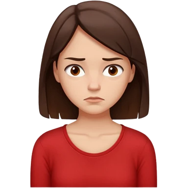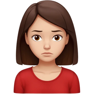 Cartoon emoji of a young brunette woman with fair-medium skin, brown eyes, wearing a red outfit. Full-height, standing confidently in a red dress posing sexy with a smile and relaxed posture. Smooth, friendly, stylized, make up on, flirty eyes and smile in a sexy position touching hairemoji