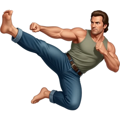 cartoon emoji of Chuck Norris, wild hair, confident grin, thumbs up emoji | AI Emoji Generator