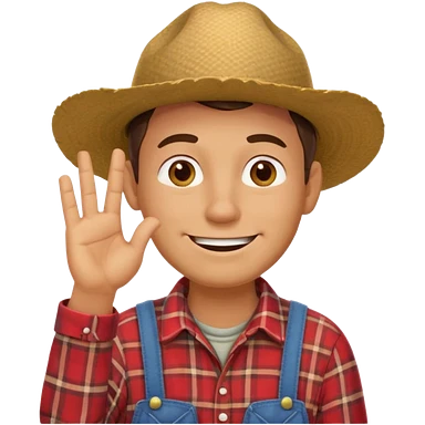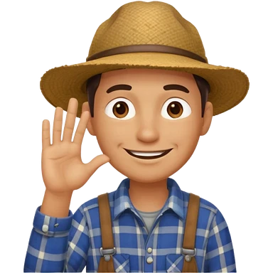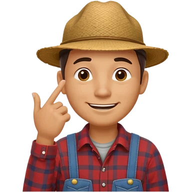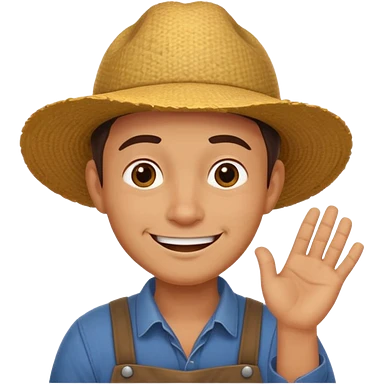 “A single emoji-style character combining 👨🌾😄 and 🤔: a smiling farmer with a straw hat, one hand under his chin in a strong thinking gesture, eyes looking upward thoughtfully, expressive face, clean flat emoji design, bold outlines, soft colors, transparent background.” emoji