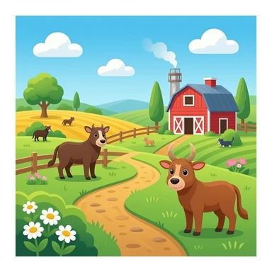Cartoon farm near a forest background emoji | AI Emoji Generator