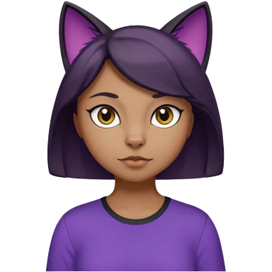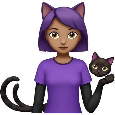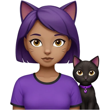Cartoon female Anthro phobic black cat with brown short hair with purple shirt emoji