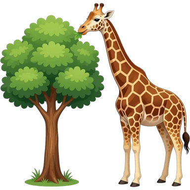 Cartoon giraffe eating leaves from a tree emoji