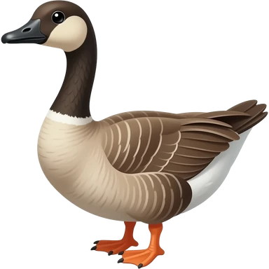 wild goose in flight, with black neck, black feet, black beak, brown wings emoji
