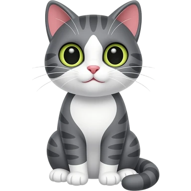 The cartoon grey and white cat sits emoji