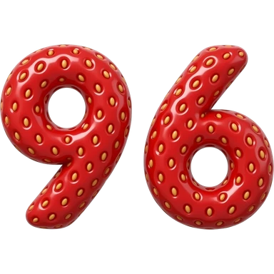TWO👉 "numbers 9 and 6 made of strawberry texture, red color with seeds, 3D glossy, smooth rounded shapes, cute cartoon style, isolated on white background, high detail" emoji
