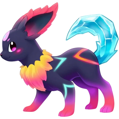 Colorful scaly flurry neon shimmering glimmering shiny bioluminescent translucent luminescent neon pastel bright pale Latias-Sergal-Vernid-Lombax-Renamon-Zeraora-Bastet-Fakémon-hybrid-fusion-creature, full body emoji