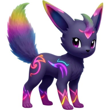 Colorful scaly flurry black dark shiny bioluminescent translucent luminescent neon pastel bright pale Latias-Sergal-Vernid-Silvally-Renamon-Zeraora-Bastet-Fakémon-hybrid-fusion-creature, full body emoji