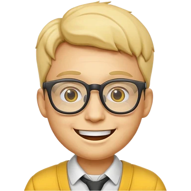 teen nerd orange hair boy curly orange hair wearing white shirt inside a yellow sweater with glasses emoji