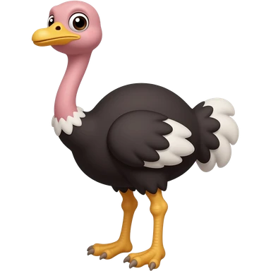 A cute cartoon adult male ostrich standing with black feathers. Mouth open. emoji