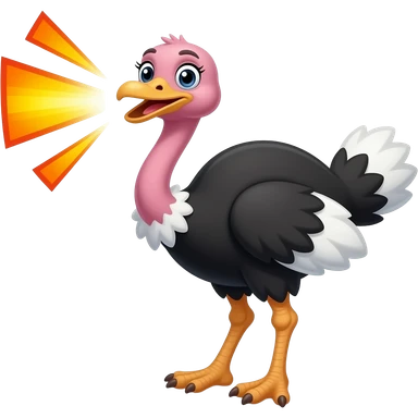 A cute cartoon adult male ostrich with black feathers. Mouth open. emoji