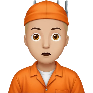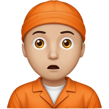 portrait of white skin American prisoner in an orange uniform. very realistic and detailed emoji