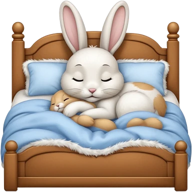 cartoon rabbit sleeping soundly in a big bed with its eyes closed emoji
