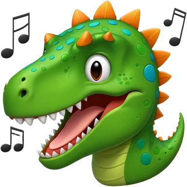 cartoon dinosaur face with music notes emoji