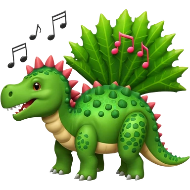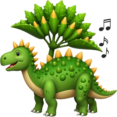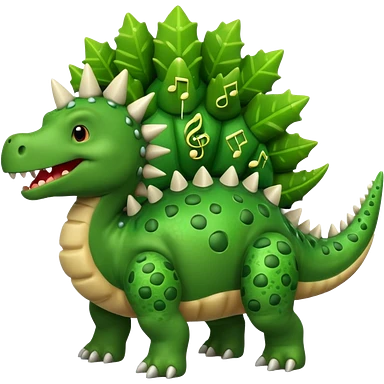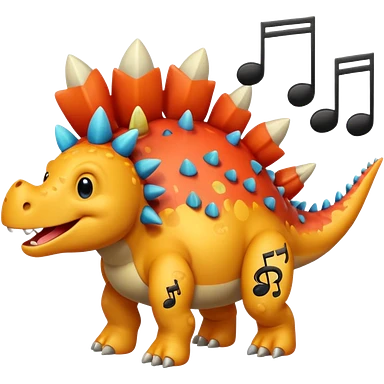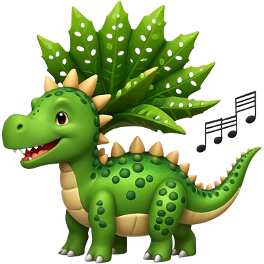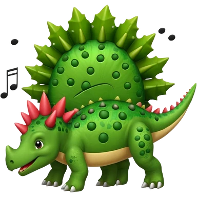cartoon stegosaurus with music notes emoji