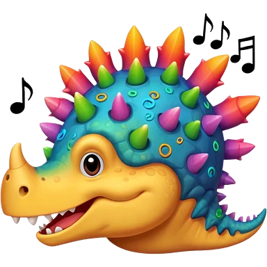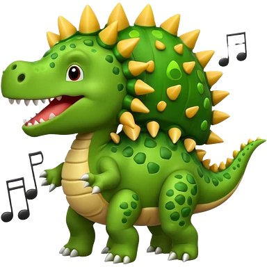cartoon stegosaurus face with music notes emoji