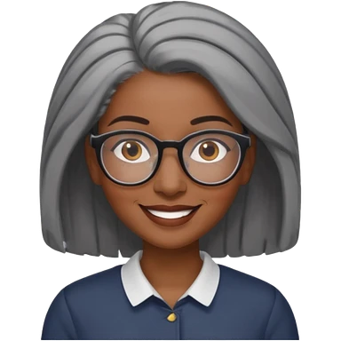 emoji of a black grandma women with longer past shoulder black and gray hair with glasses and brown eyebrows emoji