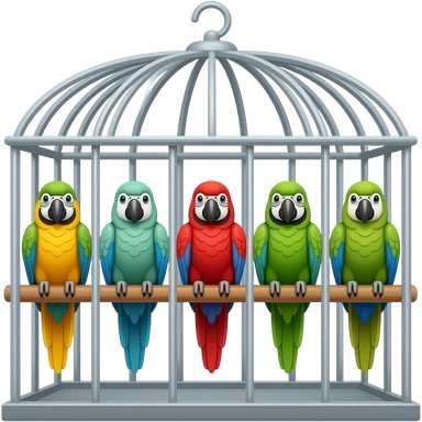 Cartoon 5 parrots in a cage emoji