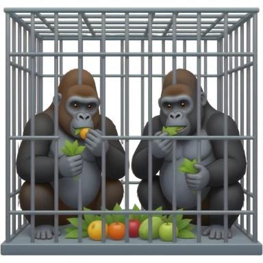 Cartoon 2 gorilas eating plants and fruit in a cage emoji