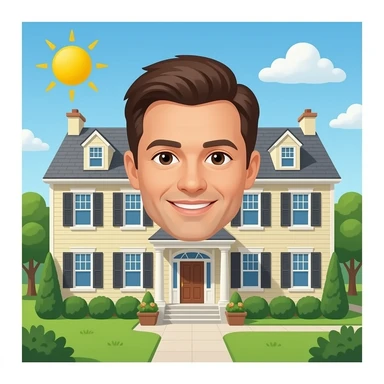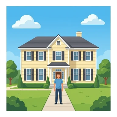 una casa grande con una persona pero con cuerpo emoji