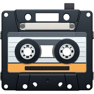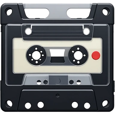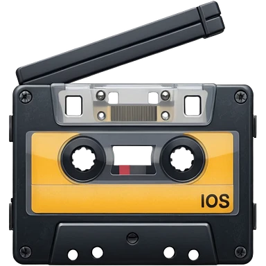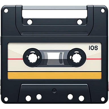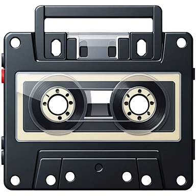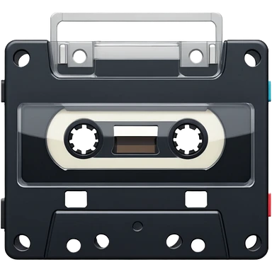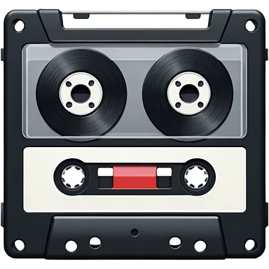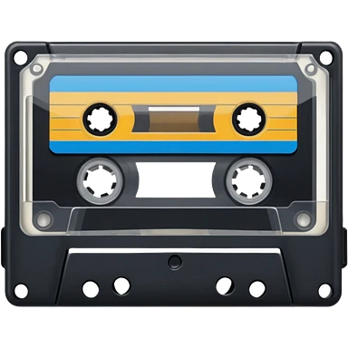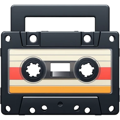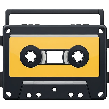 Anthropomorphized Cassette Tape: A classic cassette tape with wide eyes and a playful grin, holding its spools like little fists. Tape unravels from one side like an arm waving, ready to throw it back to the old-school jams. emoji